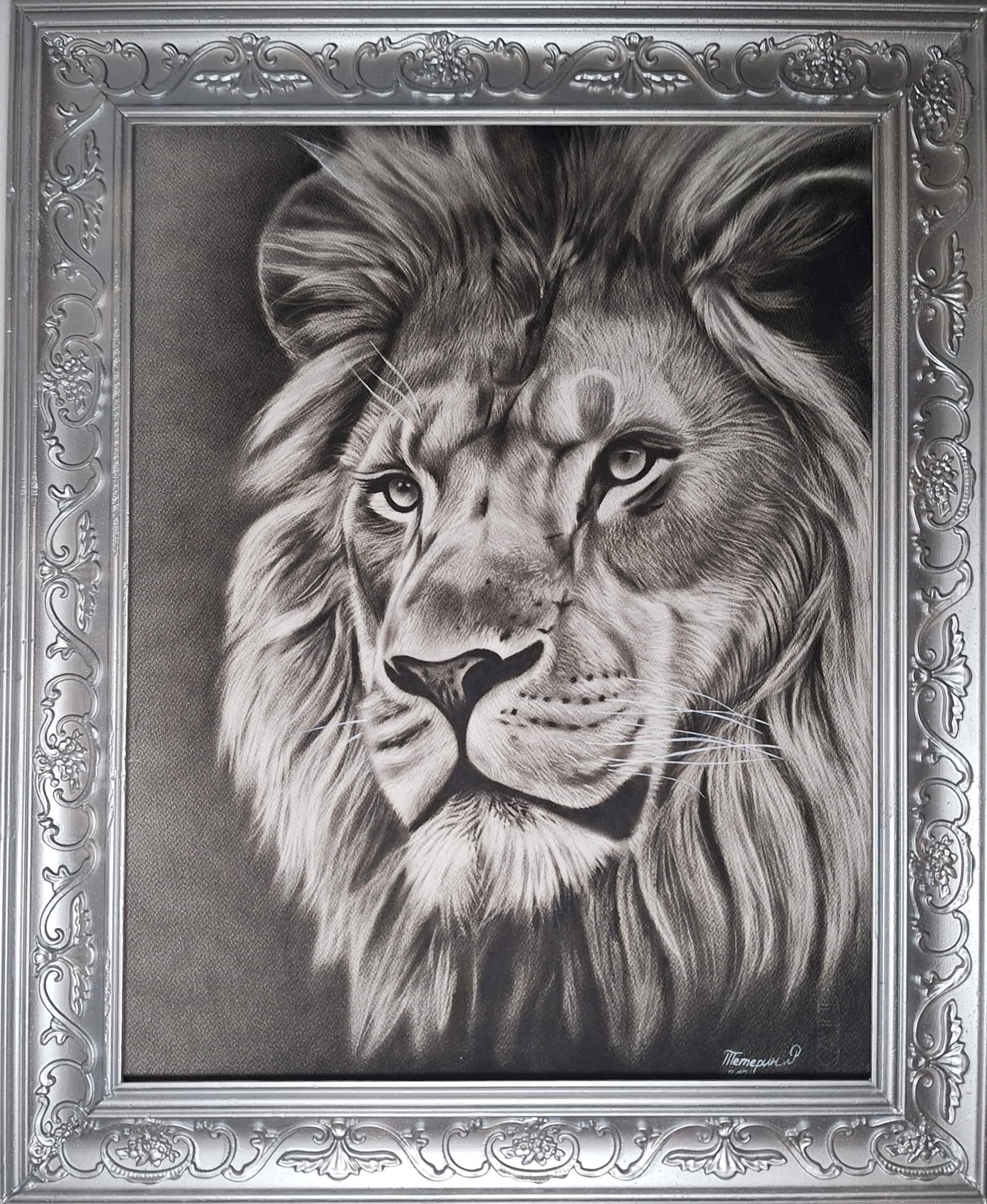 Le lion, symbole universel de force et de souveraineté, est ici représenté avec une intensité qui transcende la simple image. Son regard profond capte immédiatement l’attention : à la fois noble et menaçant, il impose le respect et incarne la confiance absolue. La crinière, peinte avec une minutie hyperréaliste, évoque le feu et la lumière, donnant vie à chaque mèche comme si elle bougeait sous le souffle du vent.