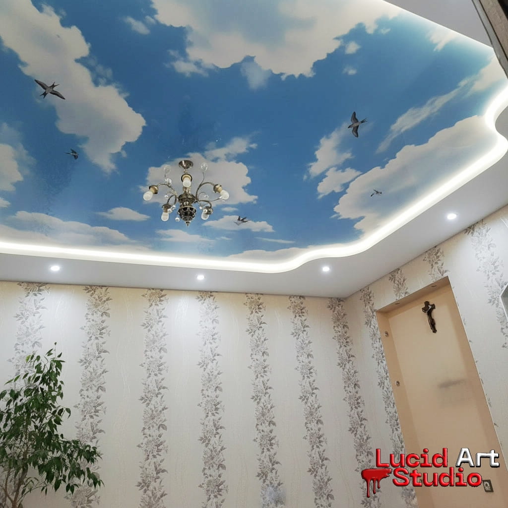 Роспись потолков оценивается выше по сравнению с настенными работами. Это связано с тем, что выполнение росписи на горизонтальных поверхностях физически сложнее: требуется постоянная работа на высоте, использование лестниц или строительных лесов. Скорость выполнения при этом ниже, а сроки — больше.